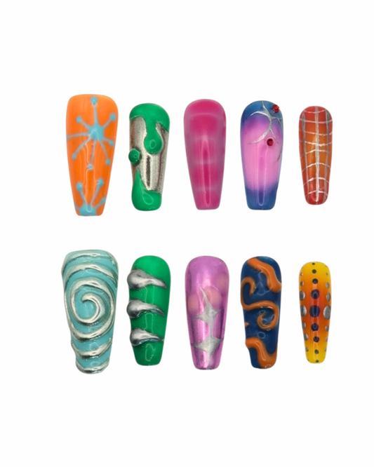 Purchase from our Custom Press On Nails Gallery! All ready-to-go designs. Choose from a variety of trendy looks and styles. Before purchasing, make sure to grab a Sizing Kit to find your perfect fit. The Sizing Kit is required to ensure your pre-made nails fit flawlessly!